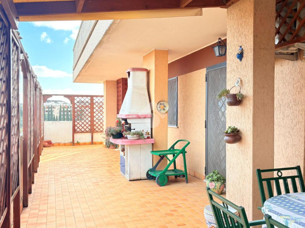 Nel quartiere Giardino di Roma, precisamente in via Nino Taranto, proponiamo in vendita un appartamento quadrilocale attico, posto al 5° ed ultimo piano di una palazzina in tinta in ottimo stato manutentivo. Soluzione rara nel quartiere, l’immobile si distingue per lo splendido terrazzo angolare di circa 100 mq, con vista libera sul verde, ideale per momenti di relax e convivialità all’aperto. L’appartamento è così composto: ingresso, ampio soggiorno, cucina abitabile, disimpegno, ripostiglio con ottimo utilizzo come cabina armadio, camera padronale con bagno finestrato en suite, due camere doppie, secondo bagno con impianto di aerazione. L’immobile è dotato di numerosi comfort, tra cui: grate di sicurezza, zanzariere, aria condizionata, barbecue in terrazzo. Completa la proprietà un ampio box auto di 23 mq posto al piano seminterrato, comodamente raggiungibile tramite ascensore, incluso nel prezzo. Una soluzione ideale per chi è alla ricerca di spazi esterni importanti, luminosità e tranquillità, senza rinunciare alla comodità dei servizi del quartiere.