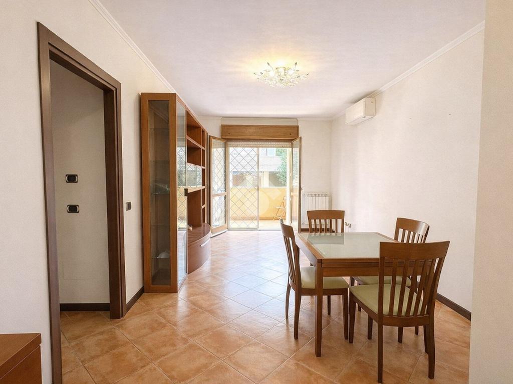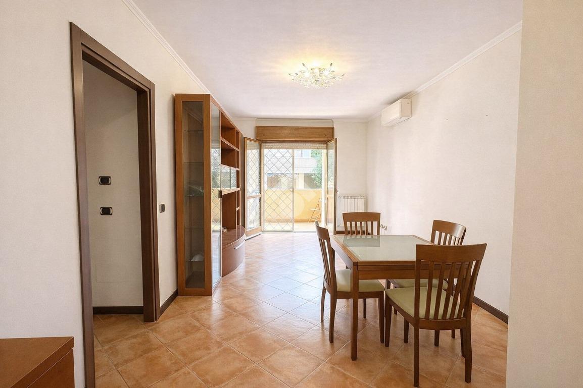 Disponiamo in quartiere Giardino di Roma, via Domenico Modugno, di appartamento bilocale di ca 60 mq al primo piano di cinque composto di ingresso, soggiorno, cucina abitabile, camera matrimoniale, bagno, terrazzo frontale ca 20 mq, box al piano seminterrato di 24 mq. La soluzione si presta altresì ad essere trasformata in trilocale. Per appuntamenti contattare anche via Whatsapp 327-7554497, chiavi in agenzia, già libero, disponibile da subito.