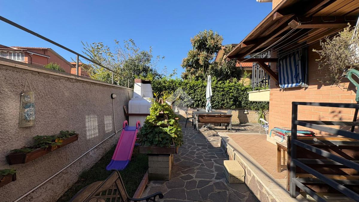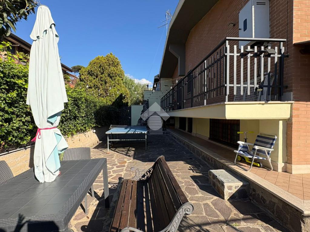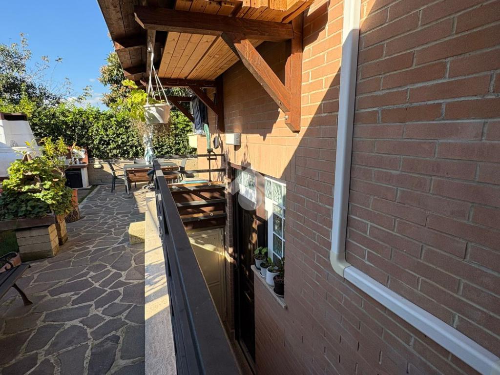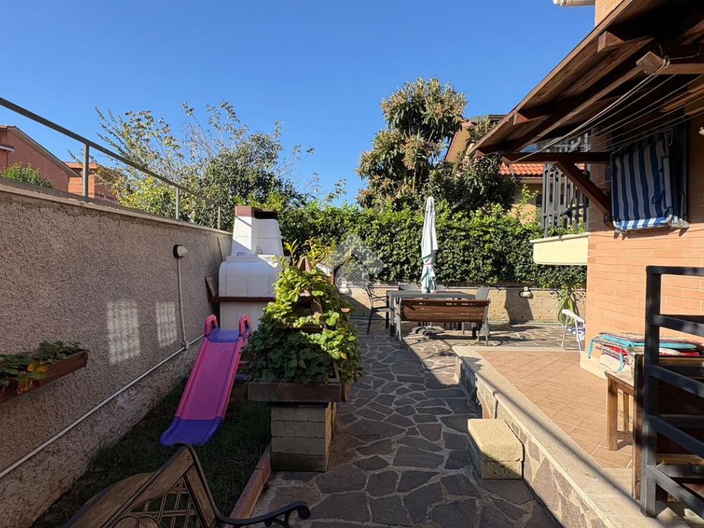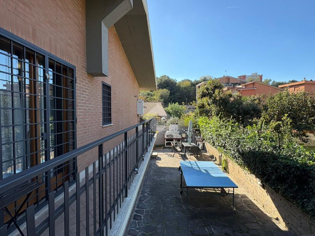 Proponiamo la vendita di una porzione di quadrifamiliare nella zona di Casal Bernocchi precisamente in Via Pavullo nel frignano. L'immobile allo stato attuale e' cosi composto: al piano terra ampio salone con cucina a vista, una camera da letto, un bagno; al piano mansardato una camera e un bagno; al piano seminterrato sala con cucina a vista, camera da letto, bagno e ripostiglio. Dispone di doppia entrata rendendo l'immobile diviso in due unita' abitative autonome. Ottimo stato interno, dotato di aria condizionata e riscaldamento autonomo. Completano la proprieta' un ampia corte esterna con barbecue e posto auto scoperto.