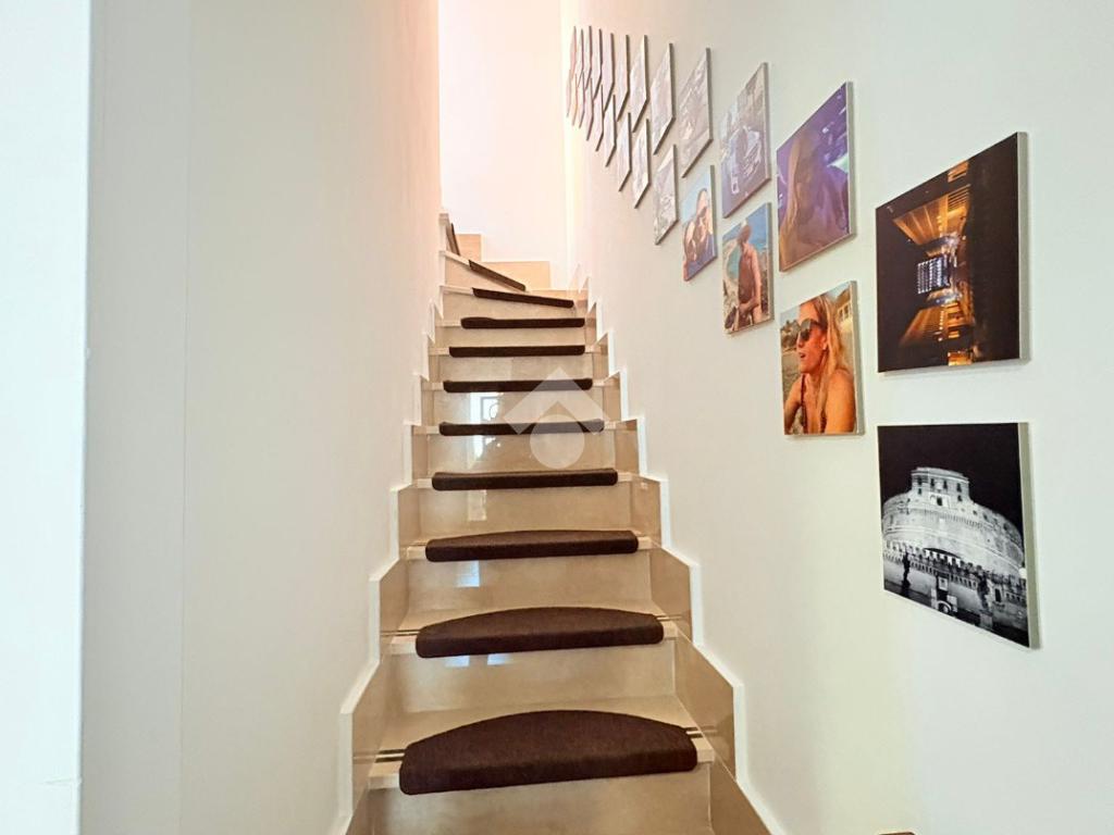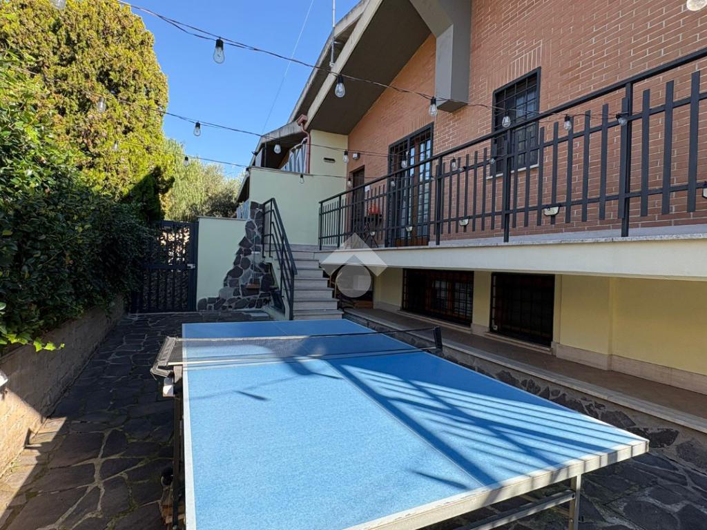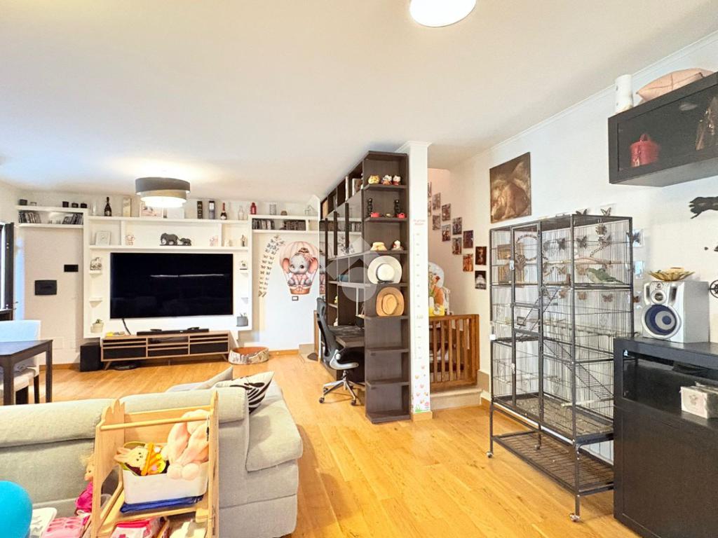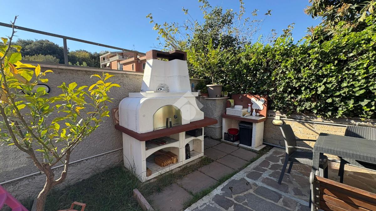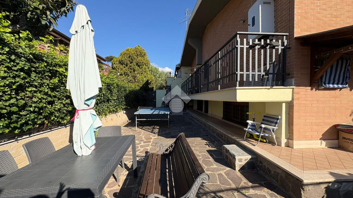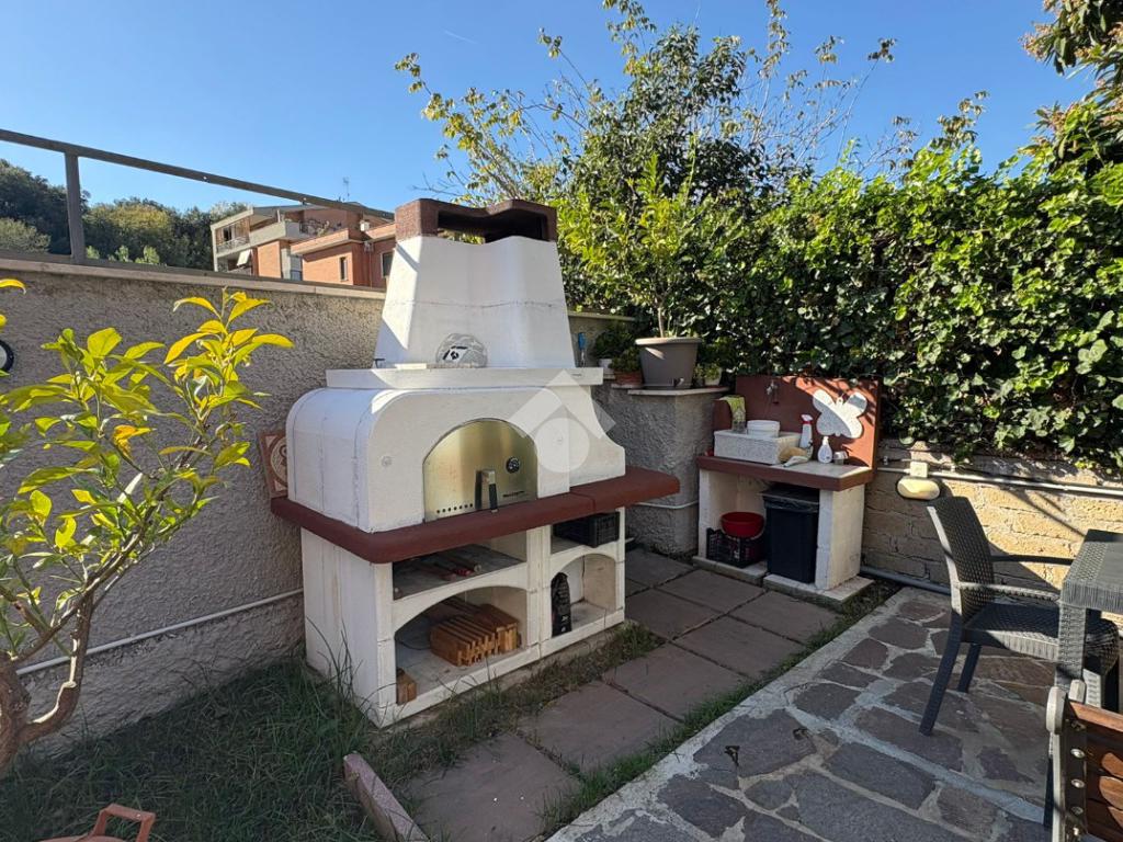 Proponiamo la vendita di una porzione di quadrifamiliare nella zona di Casal Bernocchi precisamente in Via Pavullo nel frignano. L'immobile allo stato attuale e' cosi composto: al piano terra ampio salone con cucina a vista, una camera da letto, un bagno; al piano mansardato una camera e un bagno; al piano seminterrato sala con cucina a vista, camera da letto, bagno e ripostiglio. Dispone di doppia entrata rendendo l'immobile diviso in due unita' abitative autonome. Ottimo stato interno, dotato di aria condizionata e riscaldamento autonomo. Completano la proprieta' un ampia corte esterna con barbecue e posto auto scoperto.