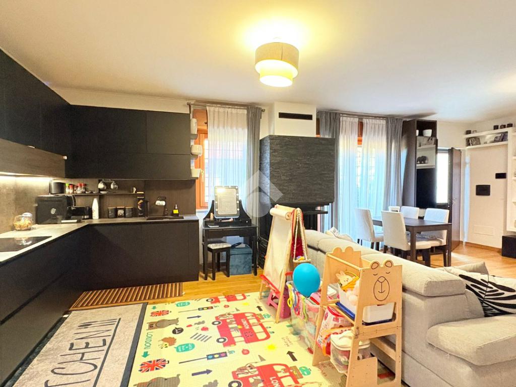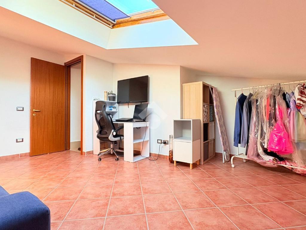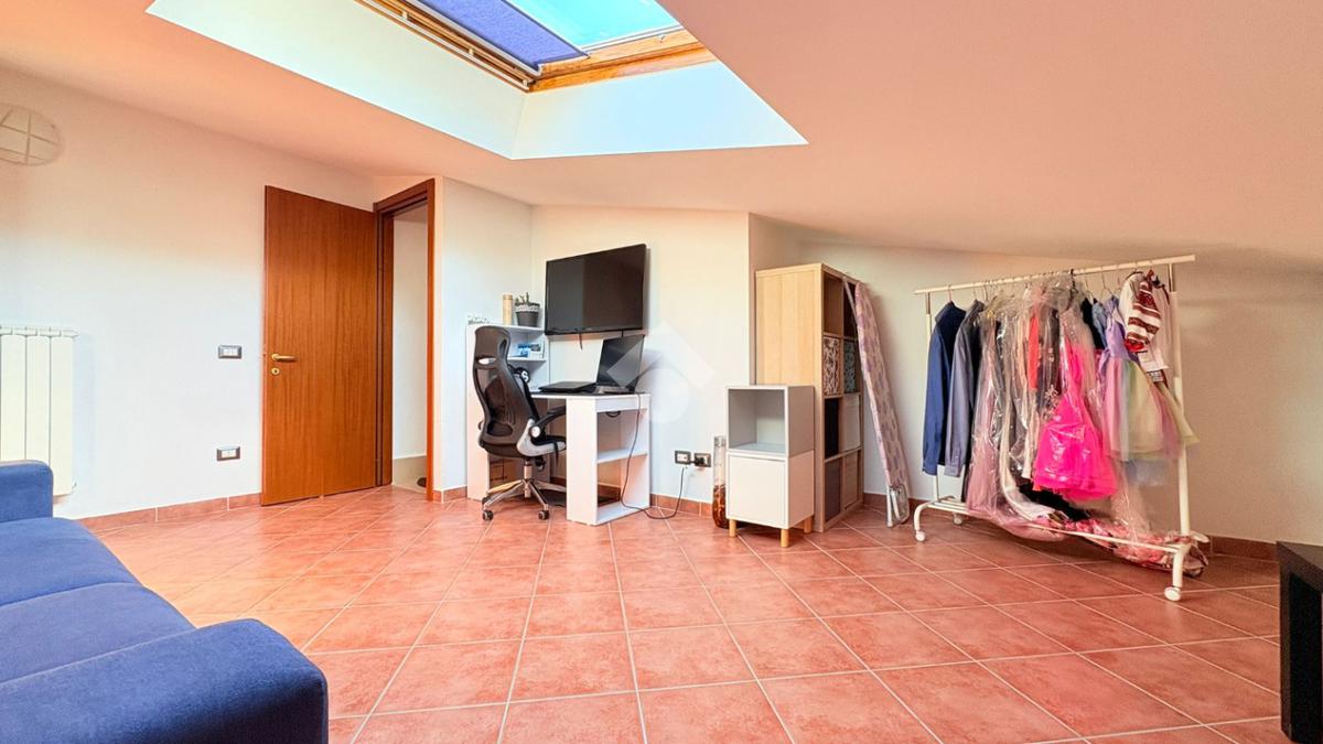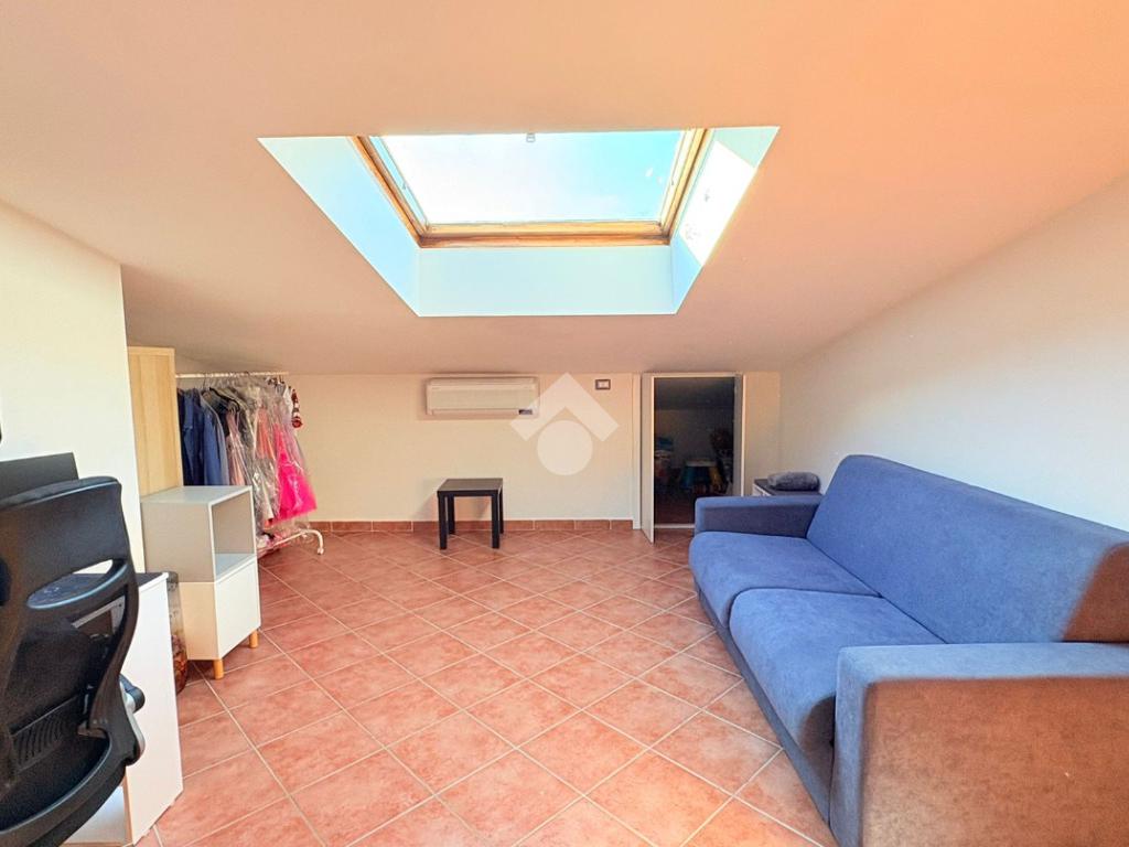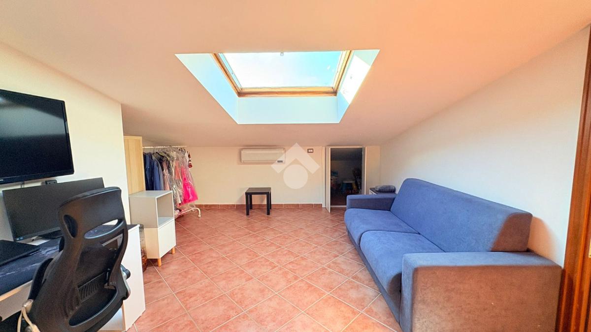 Proponiamo la vendita di una porzione di quadrifamiliare nella zona di Casal Bernocchi precisamente in Via Pavullo nel frignano. L'immobile allo stato attuale e' cosi composto: al piano terra ampio salone con cucina a vista, una camera da letto, un bagno; al piano mansardato una camera e un bagno; al piano seminterrato sala con cucina a vista, camera da letto, bagno e ripostiglio. Dispone di doppia entrata rendendo l'immobile diviso in due unita' abitative autonome. Ottimo stato interno, dotato di aria condizionata e riscaldamento autonomo. Completano la proprieta' un ampia corte esterna con barbecue e posto auto scoperto.